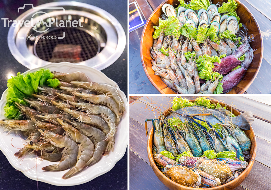 วันนั้นเราไปกัน 5 คนกลัวไม่อิ่มก็จัดเป็นเซต L มาทานซะเลย โดยเซตที่ว่านี้จะจัดมาสวยงามแบบนี้ ซึ่งเราสามารถที่จะเลือกนั่งโต๊ะที่จะปิ้งกินเองก็ได้ หรือจะให้ทางร้านปิ้งให้ก็ได้ โดยที่เมนูทั้งหมดหากเอาไปปิ้งย่างจะฟรีค่าทำอาหาร แต่หากเอาไปปรุงอาหารจะคิดเมนูละ 50 บาทยกเว้น ปลากะพงที่จะทอดน้ำปลา / ทอดกระเทียม ให้ฟรีจ้า ดังนั้นขาปิ้งย่างซีฟู้ดนี่ไม่ควรพลาดมากๆ