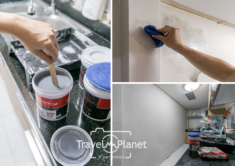 ด้วยความครัวเราเดิมของเราเป็นครัวต่อเติมไปหลังบ้านมีพื้นที่ไม่เยอะ และใช้เป็นผนังสีขาวทำให้ปัจจุบันก็เลอะเทอะประมาณนึง เพราะมีคราบอาหารและคราบขยะใกล้ๆถังขยะที่กระเด็นไปติดผนังและเช็ดไม่ออก เราเลยถือโอกาส เลือกห้องครัวเรามาเปลี่ยนให้เป็นครัวลอฟท์ๆกันด้วยสีที่ได้มานี่แหละ ซึ่งเราสามารถ DIY ทำได้เองง่ายๆเลยนะ เราผู้ไม่เคยมาสีมาก่อนในชีวิตก็เลยขอลองทำดูหน่อย มาลุ้นกันว่าจากครัวเดิมๆเก่าๆของเราจะลอฟท์ได้ขนาดไหน