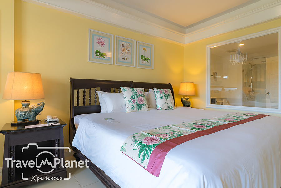เราไปพักห้อง Deluxe Room สีห้องตกแต่งห้องด้วยสีพาสเทลหวานมากๆ ซึ่งจะมี 3 โทนคือ เขียว ฟ้า เหลือง ใครชอบสีไหนก็ลองขอทางรีสอร์ทดูได้นะ จุดเด่นที่เราชอบมาก คือ พื้นที่ห้องกว้างเดินสบาย สำหรับห้องแบบ Double ที่เราเลือกนั้นเตียงนอนจะเป็นเตียงเดี่ยว 2 เตียงมาชนกัน ทำให้มีพื้นที่เตียงกว้างถึง 7 ฟุตต่างจากเตียง Double ทั่วไปที่จะกว้างแค่ 6 ฟุตเท่านั้น เลยพอที่จะให้เรา 3 คนนอนสบายๆ (แม้ลูกจะนอนดิ้นมากก็ตาม) แถมยังมีระเบียงกว้างให้เดินเล่น มองวิวอีกต่างหาก