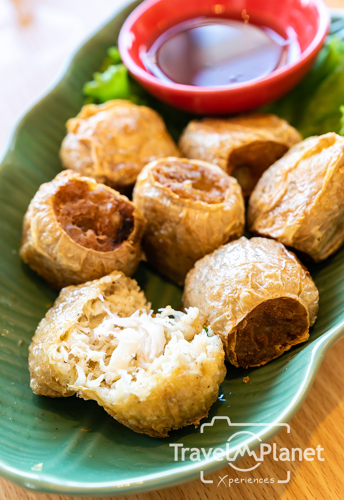 อย่างแรกที่เราสั่งเป็นอาหารกินเล่นอย่าง หอยจ๊อเนื้อกรรเชียงปูจัมโบ้ ที่เป็นหอยจ้อที่เนื้อปูเยอะที่สุดเท่าที่ผมเคยกินมาล่ะ ประหนึ่งว่าเอาเนื้อปูอย่างเดียวไปทำเป็นหอยจ๊ออย่างไรอย่างนั้นเลย ทานคู่กับน้ำจิ้มบ๊วยคือดีงาม หรือจะเอาไปจิ้มนำจิ้มซีฟู้ดก็เข้ากันเพราะด้วยความที่เนื้อปูเยอะนั่นเอง เมนูนี้ทานง่ายเด็กๆก็ชอบ 1 เสิร์ฟจะมีหอยจ๊อ 8 ชิ้น แต่คือถ่ายไม่ทันเด็กๆ อาหารลงแล้วเด็กๆรีบหยิบไปทานกันเลย 555